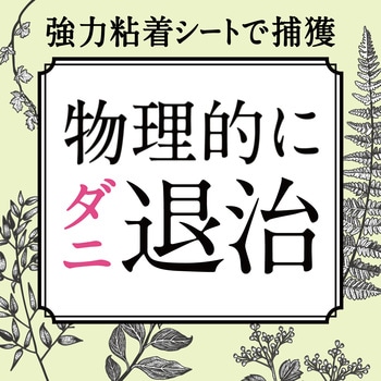 ●置くだけ簡単、捕獲したダニごと捨てられる便利なダニ捕りシートです。●粘着シートがダニをしっかり捕獲。ダニを逃がさず、ハウスダストとして舞い散らせません。●アース独自のダニを魅了する食品成分を配合。●化学殺虫成分不使用なので、薬剤に敏感な方や、お子様やペットのいるご家庭にもオススメです。※粘着シート面における屋内塵性ダニ類の捕獲効果を確認しています。※全てのダニを捕獲するわけではありません。●ジャマにならない薄型シート