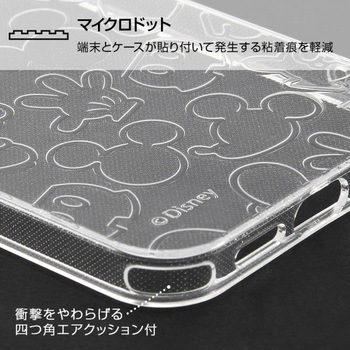 ミッキーマウスのアイコンが散りばめられた可愛いラメ入りケースミッキーマウスのアイコンが散りばめられた可愛いラメ入りケース。カメラに傷が付きにくい凸型設計。高い透明感で抜群の一体感を実現。衝撃をやわらげる柔らか素材×四つ角エアクッション。マイクロドット加工で背面の粘着痕を軽減。