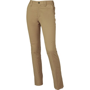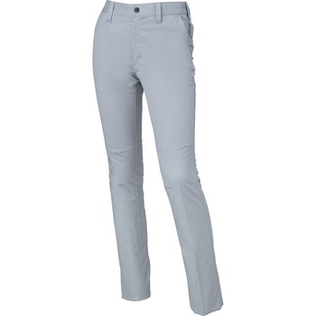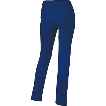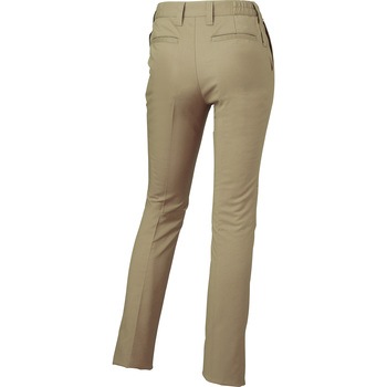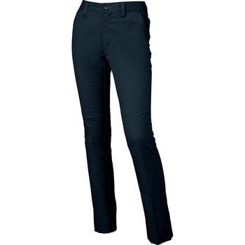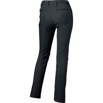 スリムシルエットのレディーススラックス。ストレッチ素材と脇ゴムで快適な穿き心地。