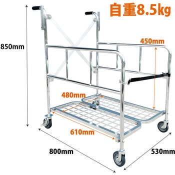落下防止のメッシュの荷台とゴムベルト付でW60×D45×H45cmの箱やカゴがぴったり収まり、段差などでも、滑らないように強力なゴムベルト付き!使用後は、足で持ち上げ、16cm幅に折り畳み可能!!