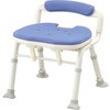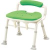 狭い浴室でも安心して使えます。片手ですばやく折りたため、自立します。腕を曲げずに持ち運べるので、軽い力で楽に移動させられます。折りたたみレバーが座面についているので、前からも後ろからも折りたたみを行えます。背骨の凸部が背もたれに当たらず、痛くないのでしっかり座れます。