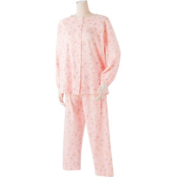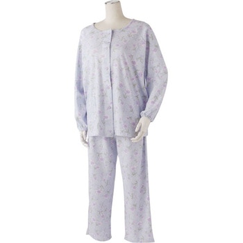 前開きタイプで、袖口が広く着脱が楽です。綿100%で快適な着心地。