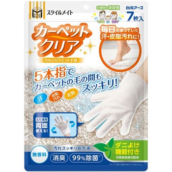 布製品をサッとふくだけで表面の汚れをふきとるウエット手袋。5本指形状で細かいところもスッキリ。布製品にダニを寄せ付けにくくします。消臭・除菌・抗菌効果も。無香料。(すべての菌に効果があるわけではありません)