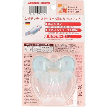 口腔の自然な発達をやさしくサポート、「出っ歯になりにくい」今までになかったおしゃぶりドイツの歯科権威ロルフハインツ教授との共同開発厚みが薄く、前歯や上アゴへの圧力を減少させます舌のはいるスペースを確保歯や歯茎の間に自然にフィットシリコーン製(乳首)