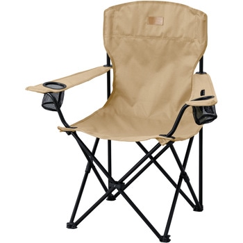 ゆったり座れる広座面設計のキャンプチェアハイタイプです。よりリラックスして座れるよう、背もたれの角度にこだわりました。収納に便利なキャリーバック付きです。ひじ掛けにはドリンクホルダー2個とスマホホルダーが付いています。