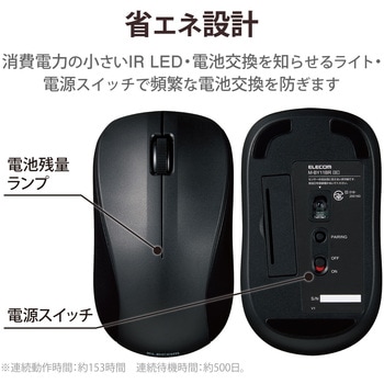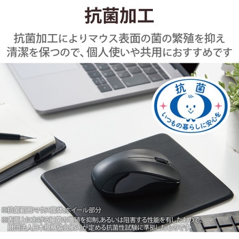 わずか約67gと軽量ながら約10カ月電池交換不要! Bluetooth(R)5.0規格に対応したMサイズの3ボタンIR LEDマウス。クリック音が静かで、会議中や夜間の使用にもおすすめ。さらに、抗菌加工で本体を清潔に保ちます。