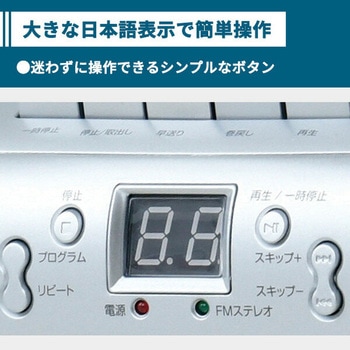 家庭用電源、乾電池どちらでも使用できるCDラジカセ。ワイドFM対応。CDも、カセットも、ラジオもこれ一台で。持ち運びに便利なハンドル付き。CDまたはラジオからカセットテープへ録音可能。CDのリピート再生、プログラム再生可能。