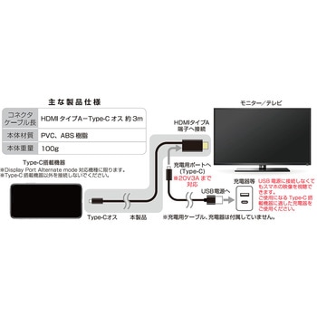 映像を映しながら、Type-C端子搭載スマホの充電ができる充電用Type-Cポート付。