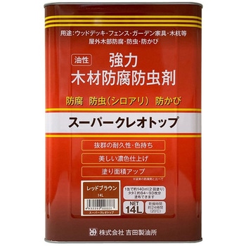 紫外線に強く、色落ちや剥がれが起きにくい高耐久タイプの木材防腐剤(屋外用)です。