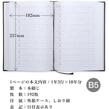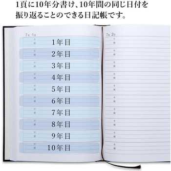 これまで5年連用日記を使用していましが、後で振り返る時に、10年物が有れば便利と思い、今回注文してみました。サイズ、紙質、価格すべてに満足しています。