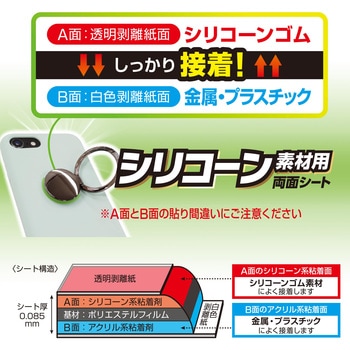 A面:シリコーンゴム/シリコーンスポンジ/シリコーン処理面、B面:金属/各種プラスチック