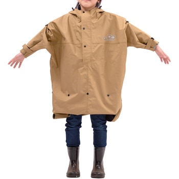 #7441サイクルモードハイポンチョと同素材で企画した親子で揃えられる子供用レインポンチョです。成長に合わせた着丈・袖調整機能付き(適応身長105~125cm)。安全性を高める3箇所の反射プリント付き。