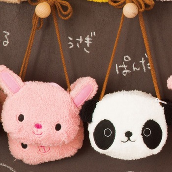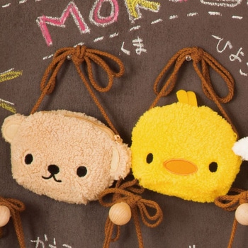 もこもこの手触りとかわいい表情がポイントのポシェットです。