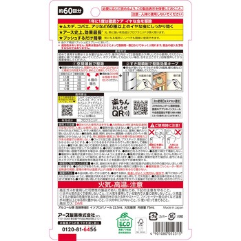 ・アース史上、効果最長(※虫ケア用品1プッシュ式スプレーにおいて。):光、熱に強い有効成分ブロフラニリドが長く残ります。