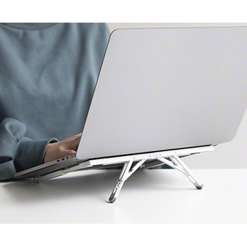 販売応援サイトmakuakeで支援金額486万円を突破!!1500人を超える支援人数を達成!視線が上がるだけでこんなに楽にパソコン作業ができるなんて!折り畳めばスマートフォンよりもコンパクトになるノートパソコンスタンド。また、アルミ製で丈夫で軽量。ノートPCとの持ち運びも負担になりません。11インチ~17インチのノートパソコンに対応、タブレットでもご利用いただけます。リモートワーク等でも大活躍のスタンドです。