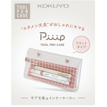 ”スタメン文具”がおしゃれにキマるツールペンケース〈ピープ〉にコンパクトに持ち運びができるフラットタイプが新登場!フラットな形状なのでカバンに収納しても収まりがよく、書類やノートと重ねてもかさばりにくいため、持ち歩きに便利です。お気に入りの文具は透明ポケットに入れて、見せて収容!機能性重視のペンや文具はインナーケースに入れて隠せます。インナーケースには、クリップやふせんなどの収容に便利なメッシュポケットが付いています。