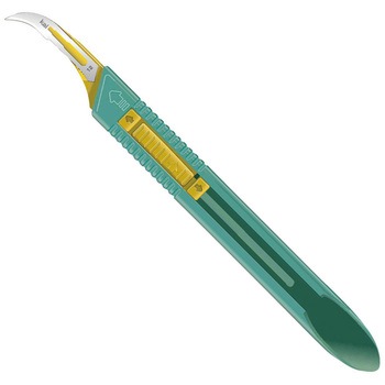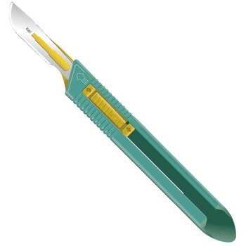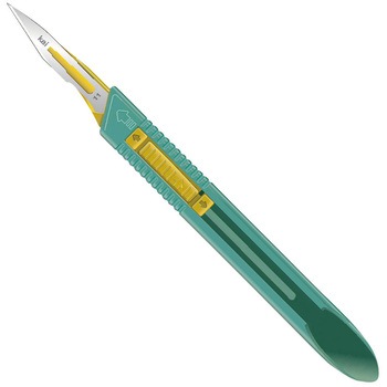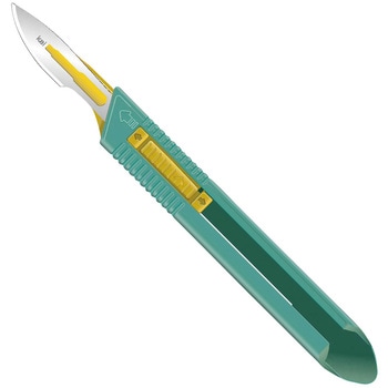 受け渡し時や廃棄時の切創事故を防ぐ安全性の高いメスです。