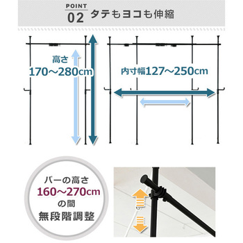 L字仕様で簡易スペースを作れる突っぱり式のカーテンレール。支柱3本とレール2本のセット。何もない空間に仕切った小部屋や間仕切りが作れる、L字型のカーテンレール。設置は工具不要でラクラク。しっかり取り付き、ずれにくいスプリング圧縮式。天井・床の接地部にはエラストマー素材のすべり止め付き。天井より約15cm下からカーテン設置可能。サボテン型フック3個付き。