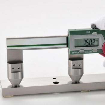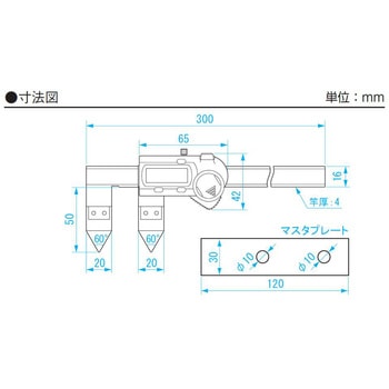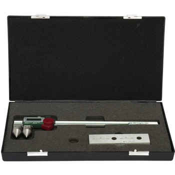 別売のBluetoothBOXに対応、測定値をパソコンへワイヤレス送信が可能です。穴の芯間を素早く測定できます。測定子が円筒型(テーパー状)になっているため、安定した測定が可能です。精度保証のため、検査時の数値を記した検査表付です。原点設定に便利なマスタプレート付です。プリセット機能付です。ホールド機能付です。オートオフ機能付(約20分)です。