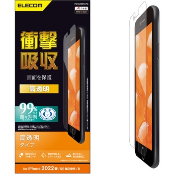 特殊構造のフィルムが衝撃を緩和し液晶画面を保護する、高透明タイプのiPhone SE 第3世代、iPhone SE 第2世代、iPhone 8、iPhone 7、iPhone 6s、iPhone 6用衝撃吸収フィルムです。
