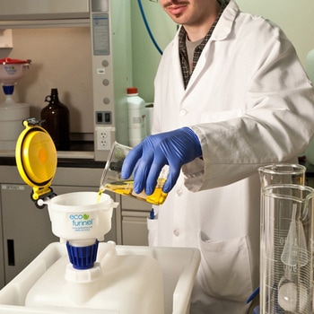 廃液をこぼす事なく安全に流し込み、カバーについたガスケットとラッチで完全に封じ込めます。ファネルのフタの色で廃液の種類分けができます。エコファネルは現在ご使用中の廃液容器にもつけられますからファネルだけでお求めになれば容器はそのままご使用になれます。(キャップのサイズによっては付けられない場合があります)ファネル(キャップ加工費込み)