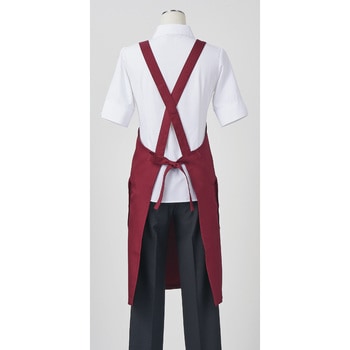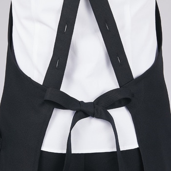 塩素消毒に強くきれいな発色が長持ちする胸当て付きエプロン。塩素消毒や工業洗濯に強いタフな素材を使用した胸当てエプロン。肩紐の長さはボタンで3段階に調節可能。両腰ポケット付き。