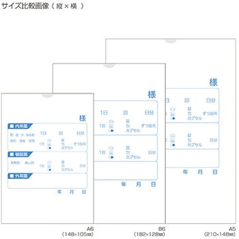『内用薬・頓服薬・外用薬』の用法欄を設けた兼用薬袋です。半円形のツメ付きで、袋をさっと開くことができます。1つの薬袋で兼用にご使用頂けるので、災害時や障害発生時の臨時薬袋としてもおすすめです。