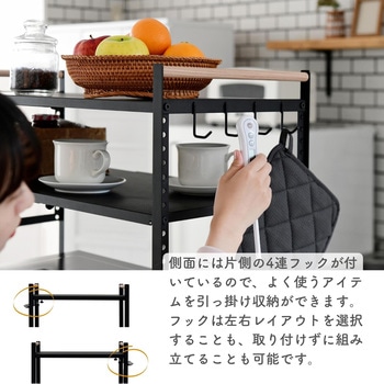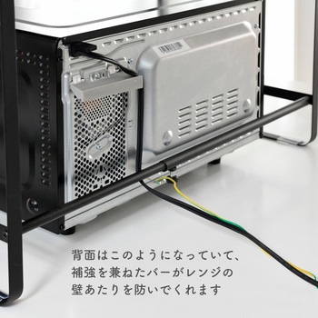 電子レンジやトースターなど家電の上の空間を活用する収納ラック。天板はスチール製、マットな質感でキッチンを邪魔しない仕上がり。設置場所に合わせて、本体の幅や棚板の高さを調整可能。(棚板は15か所の位置で選択・調整が可能)