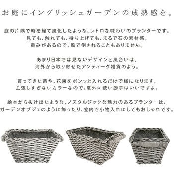 庭の片隅で時を経て風化したような、レトロな味わいのプランターです。