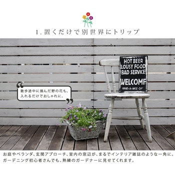 絵本から抜け出たような、ノスタルジックな魅力のあるプランターは、ガーデンオブジェのように飾ったり、室内で小物入れにしてもおしゃれです。