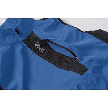 左胸の反射プリントで暗所での視認性向上今までにない脇仕様で新感覚の涼しさ配色部分にエンボス加工生地を使用しデザイン性をプラス。さらに左胸ワンポイントに反射プリントを採用し視認性を向上。通気時に空間が開き局所的に風が通る脇の仕様は、今までにない新感覚の涼しさを体感できます。<エアコンテック(R)>空気漏れが少なく優れた撥水性と透湿性に優れたソフトな風合いの素材です。