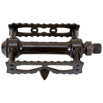 色ブラック仕様SYLVAN TOURINGをベースに後方に約8.5mmの蹴返しが突き出しています。優れたグリップ力を維持しつつ、クリップインの操作性が向上しています。横幅94mm、縦幅は63mm。MASH STREAMと比較すると横幅が15mm広くなっています。ボディ全体を電着塗装が覆い、軸には黒色の特殊なメッキが施されています。クラシカルな車体へ適用される事が多いSYLVAN TOURINGとは対照的に、ストリート系バイクによく馴染むペダルです。※このペダルはトゥクリップのご使用を推奨しています。内容量1ペア