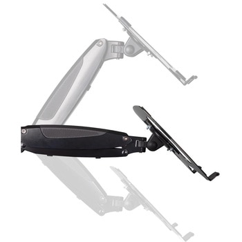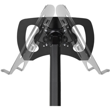 広い可動域:-85/+90°の上下振り(チルト)、-90/+90°の左右振り(スイベル)、-180/+180°画面回転(縦長・横長の画面設定)、360°アーム回転。ノートパソコンを鋭角に傾けて使用する場合は、ストッパーなどの固定具(非同梱)が必要