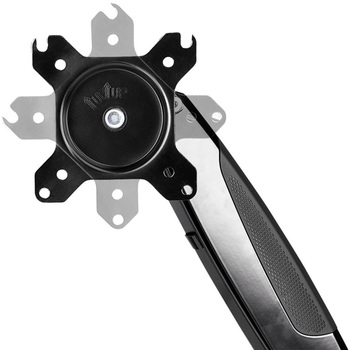 34インチ大型モニタに対応:VESA規格75x75mm/100x100mm互換、最大8kgまでの34インチ(16:9)ディスプレイ、または34インチ(21:9)ウルトラワイド型ディスプレイに対応。フルモーション可動域の高耐久性アルミ製シングルモニタアーム