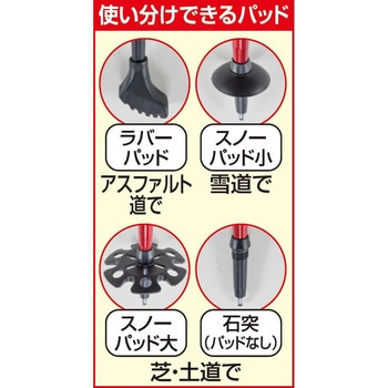 [使い分けできるパッド]ラバーパッド:アスファルト道で、スノーパッド小:雪道で、スノー パッド大/石突(パッドなし):芝・土道で