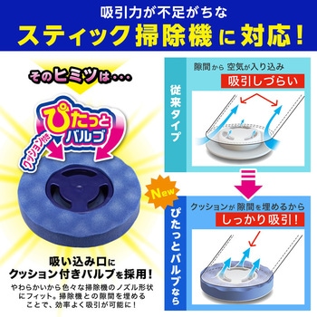 クッション付きピタッとバルブでスティック掃除機にも対応!