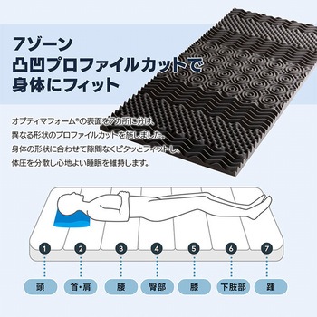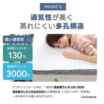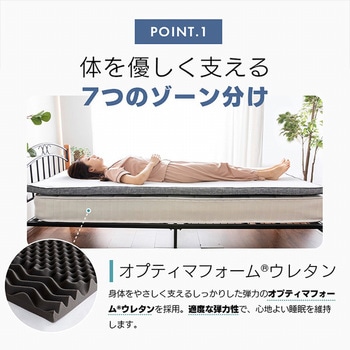 身体を優しく支えるしっかりした弾力のオプティマフォームウレタンを採用。適度な弾力性で、心地よい睡眠を維持。