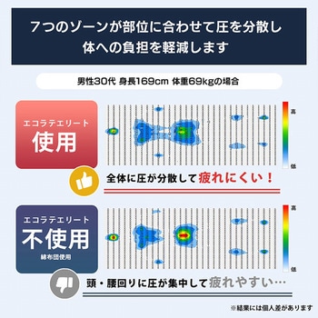 7つのゾーンが部位に合わせて圧を分散し、体への負担を軽減します。