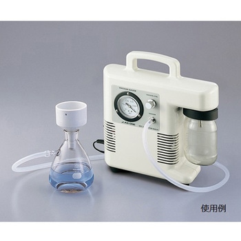 ダイアフラムドライポンプを内蔵した乾式アスピレーターです。水道のないところでも使用できます。エバポレーター・減圧ろ過・脱泡等真空・減圧が必要な様々な用途に使用できます。水温の上昇による吸引力の低下が無いので、安定した吸引が可能です。真空度の調節も可能な真空度調節機能付きで便利に使用できます。卓上で使いやすいコンパクトサイズで、ハンドル付きですので持ち運びにも便利です。