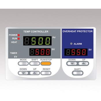 最高650℃の高温加熱が可能時計機能付きウィークリータイマーに加え、16ステップ8パターンのプログラム機能を搭載しています。デジタル設定式独立温度過昇防止装置を標準装備しています。ハンドル部(ハネアゲ式)に鍵が付いています。
