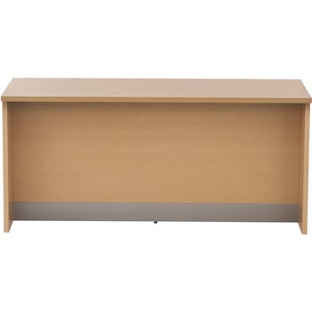 ノルムシリーズのベーシックなローカウンターW1500。つま先が当たりやすい部分の汚れを目立たなくするグレーの巾木付きデザイン。天板の両端に配線用切り欠きがあります。幕板は奥行き中央にあり、天板下に別売りのノルムローカウンター棚板W1500用を両面各1枚設置してご利用いただけます。ノルムシリーズのローカウンターW900、コーナー用と組み合わせてL字レイアウトでもお使いいただけます。