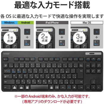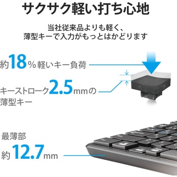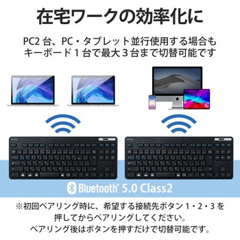 スマホ・タブレット・パソコンをマルチに接続可能な3台切替機能を搭載したBluetooth®;5.0薄型テンキーレスキーボード。