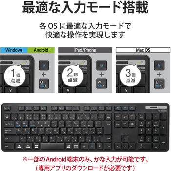 スマホ・タブレット・パソコンをマルチに接続可能な3台切替機能を搭載したBluetooth®;5.0薄型フルキーボード。
