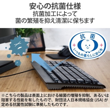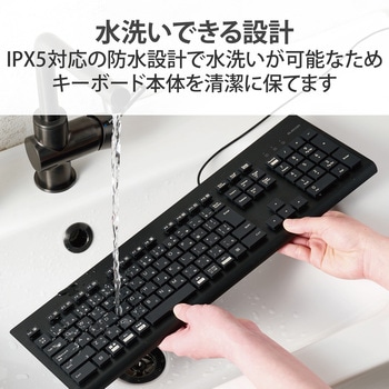 日々の汚れや小さなホコリの除去に!IPX5対応の防水設計と、キートップを浮かせるデザインでスムーズに水洗いが可能。さらに抗菌加工で安心をプラスする有線タイプの防水・抗菌フルキーボードです。