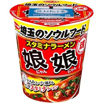埼玉県上尾市の人気ラーメン店「娘娘」のスタミナラーメンの味わいをタテ型ビッグカップで再現しました。チキンエキスとポークエキスをベースに香味野菜と魚介をバランスよく配合し、豆板醤や醤油で味を調えました。