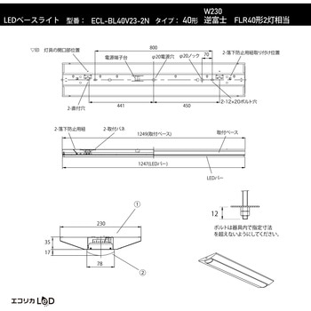 LEDioc LEDベースライト (LEDユニット一体形) 40W形 逆富士形 <230mm幅> FLR40形相当 4000Lmタイプ 2灯用相当 (プルスイッチ付)岩崎電気税込¥19,778¥17,980