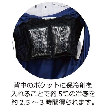 素材に高密度ポリエステルを採用し、気密性を高めたカジュアルな着心地の空調ベスト(ユニセックス仕様)に日本製保冷剤をセットしました。背中のメッシュポケットに付属の保冷剤(別売0911)を入れる事でフレキシブルに密着し快適性が高まります。6Lと7Lのビッグサイズもご用意しております。