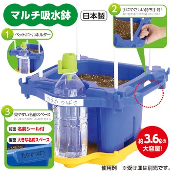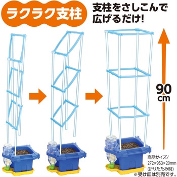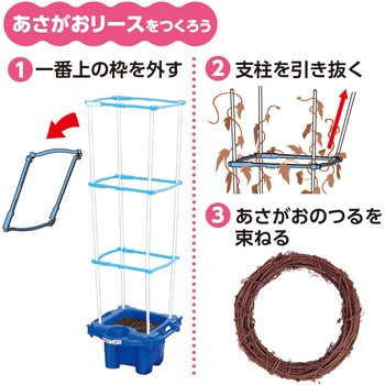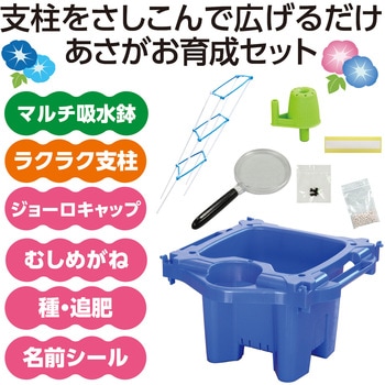 セット内容ラクラク支柱×1、マルチ給水鉢×1、マルチ給水ジョーロキャップ×1、虫めがね 小 クリップ付×1、名前シール×1、あさがおのたね(6粒入)×1、追肥(10g)×1材質PP、PMMA、ABS他寸法(mm)ラクラク支柱:272×935×20、マルチ給水鉢:285×275×170内容量1個