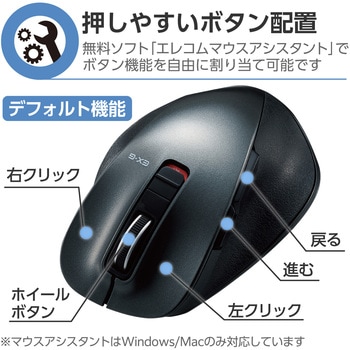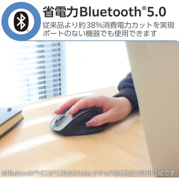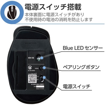 音が気になる場所でも静かに使える静音スイッチを採用。手の形状から生まれたデザインで、さらなる「握り心地」の良さを実現。場所を選ばず快適に操作できるBlueLEDセンサー、2台のパソコンをワンタッチで切り替えて使用できるマルチペアリング機能を搭載。Bluetooth(R)5.0規格に対応したMサイズの5ボタンマウス”EX-G”。