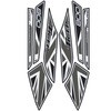 ボディーパッドは紫外線に強い特別に作られた特殊ビニール素材と、タンクパッド同様に3Dジェルシートを挿入して制作されており、左右のタンク部に貼り付けることで、飛び石等外的要因による傷を防止するのと同時に自身による乗車時の不慮における車体保護をいたします。車種に合わせたカラーリングデザインを幅広くラインナップ、ドレスアップ効果もいたします。